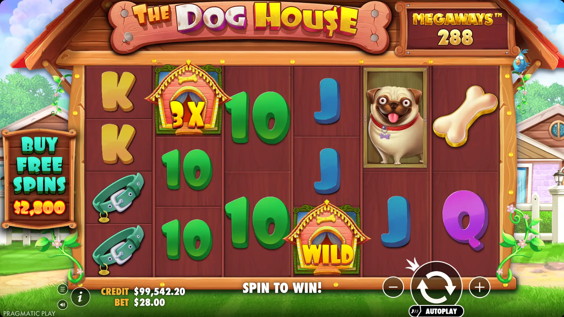 You'll instantly love the look of The Dog House Megaways—it's pure joy on a screen. The bright, cartoon style just makes you smile right away. The game is set on a vibrant street of the suburb; beautiful doggos are sitting inside the wooden doghouses. Dog characters look gorgeous and detailed; the Rottweiler, Shih Tzu, Pug, and Beagle earn the most. The motion feels very smooth and quick.
