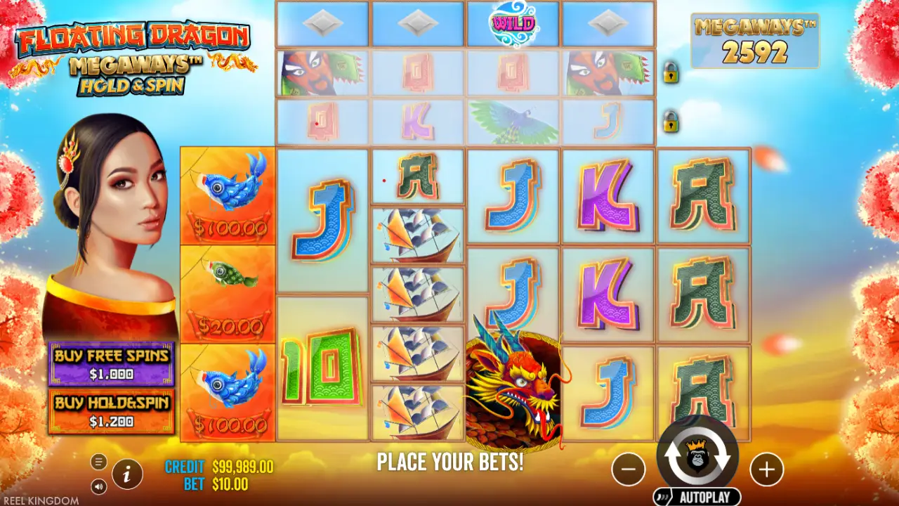 - Función destacada: innovadora combinación de Megaways (hasta 147,456 formas de ganar) con la popular mecánica Hold & Spin para multiplicadores masivos en Floating Dragon Megaways.