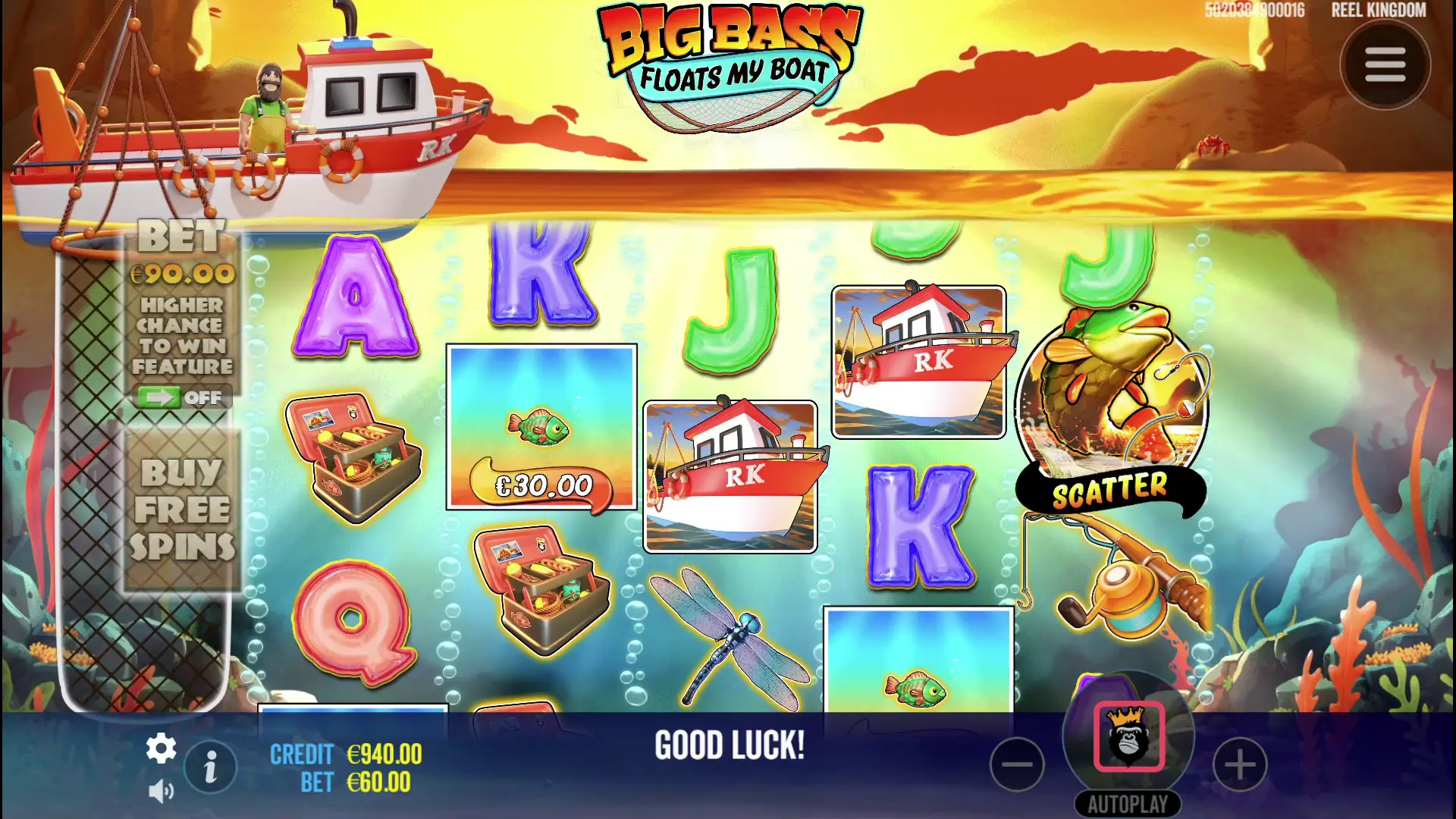 Вращайте барабаны 5x3 и закидывайте удочку — все очень просто. Вы выигрываете, когда выпадают 3 или более одинаковых символа слева направо. Множитель ставки составляет x10, и если вы хотите увеличить свои шансы на получение бонусов, вы можете активировать Ante Bet. Поймайте 3+ скаттера с рыбаком, чтобы разблокировать бесплатные вращения, в которых рыбак собирает денежные рыбки для больших выигрышей. Просто, весело и полно сюрпризов.